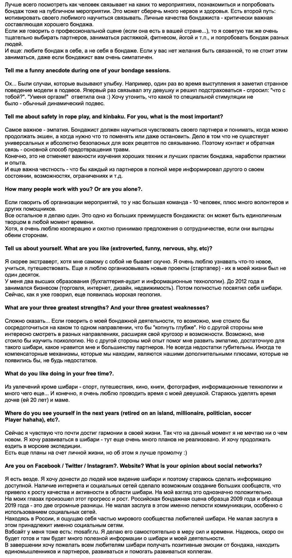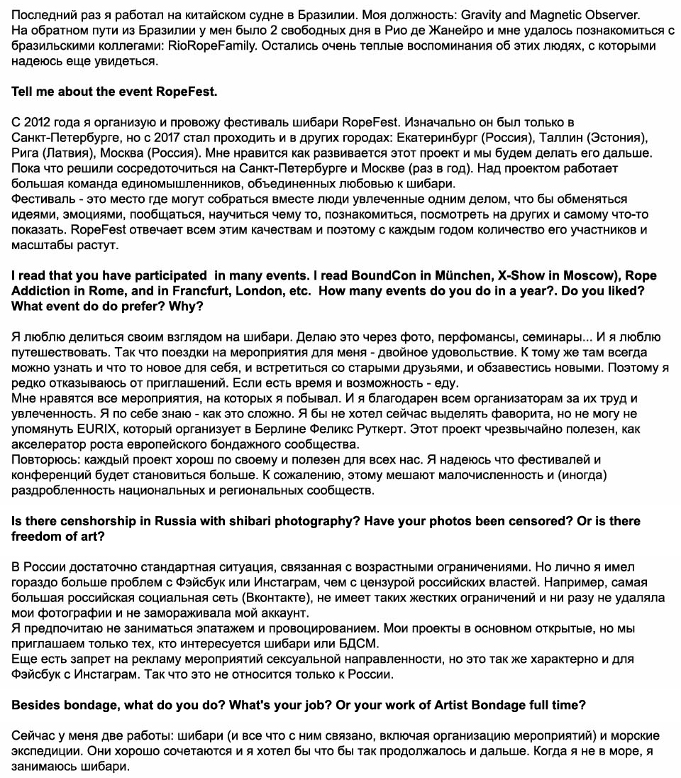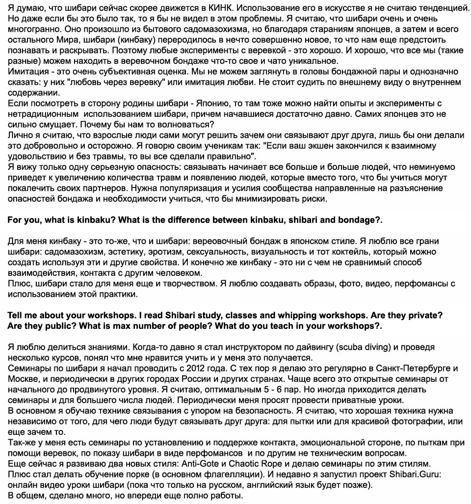 habla de él, nos habla de shibari, de sus viajes, y más detalles